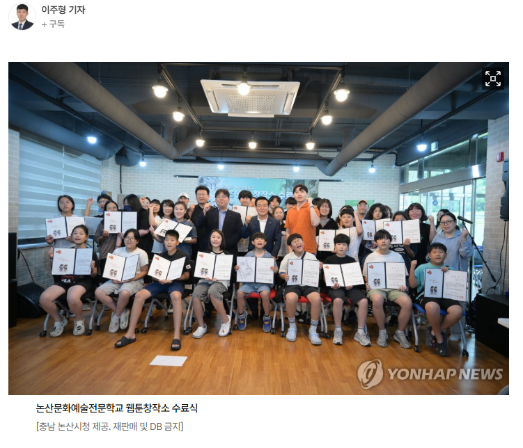 (논산=연합뉴스) 이주형 기자 = 충남 논산시는 지난 9일 논산문화예술전문학교 웹툰창작소 특강 과정 수료식을 열었다고 11일 밝혔다.